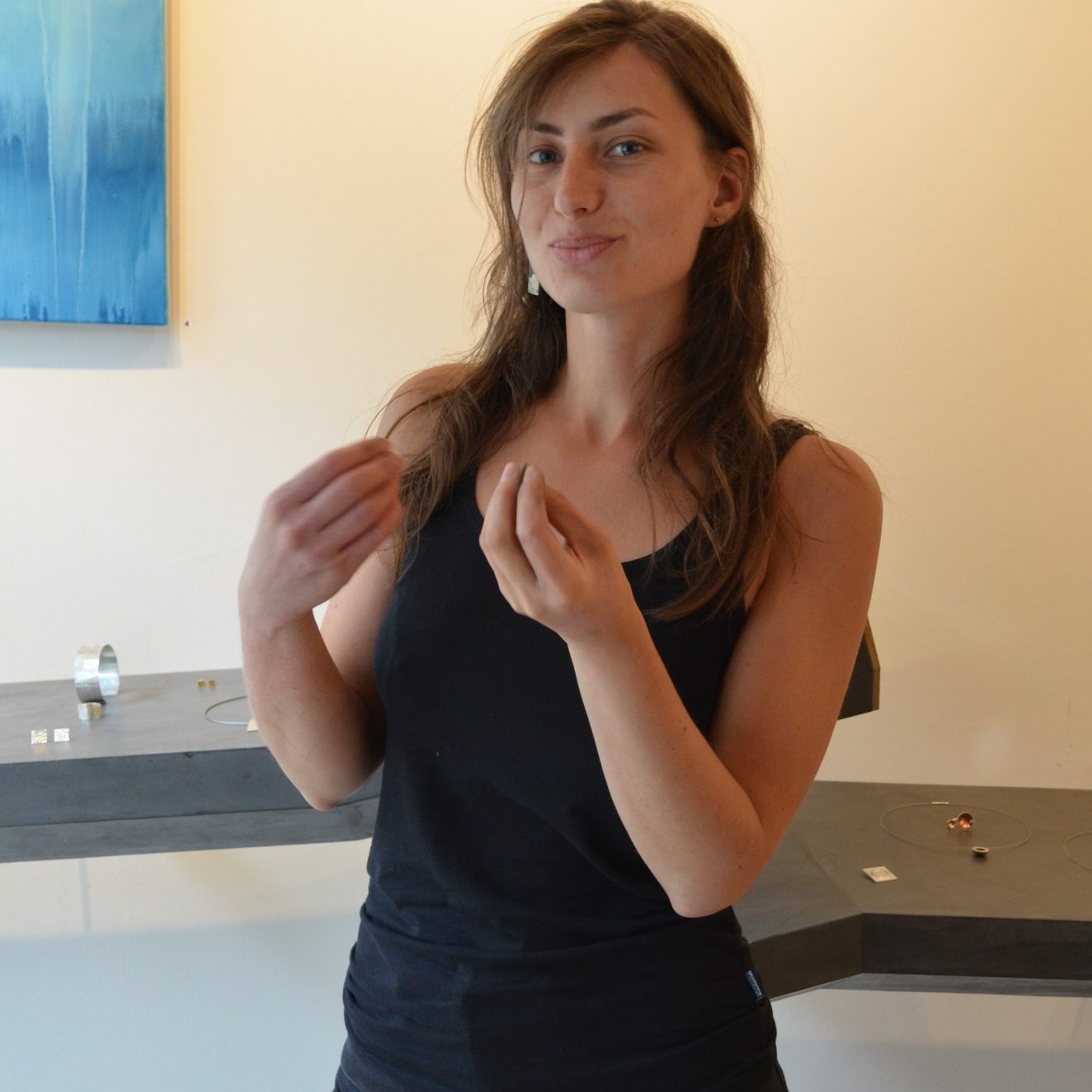 gestalterin die Gefühle mit Schmuck verbindet.